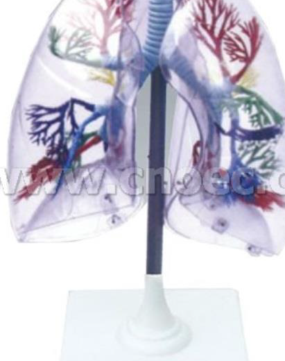 Slightly enlarged. Provides the shape of lung and shows the bronchial tree. On stand with base.